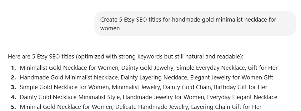 Create 5 Etsy SEO titles for [product].