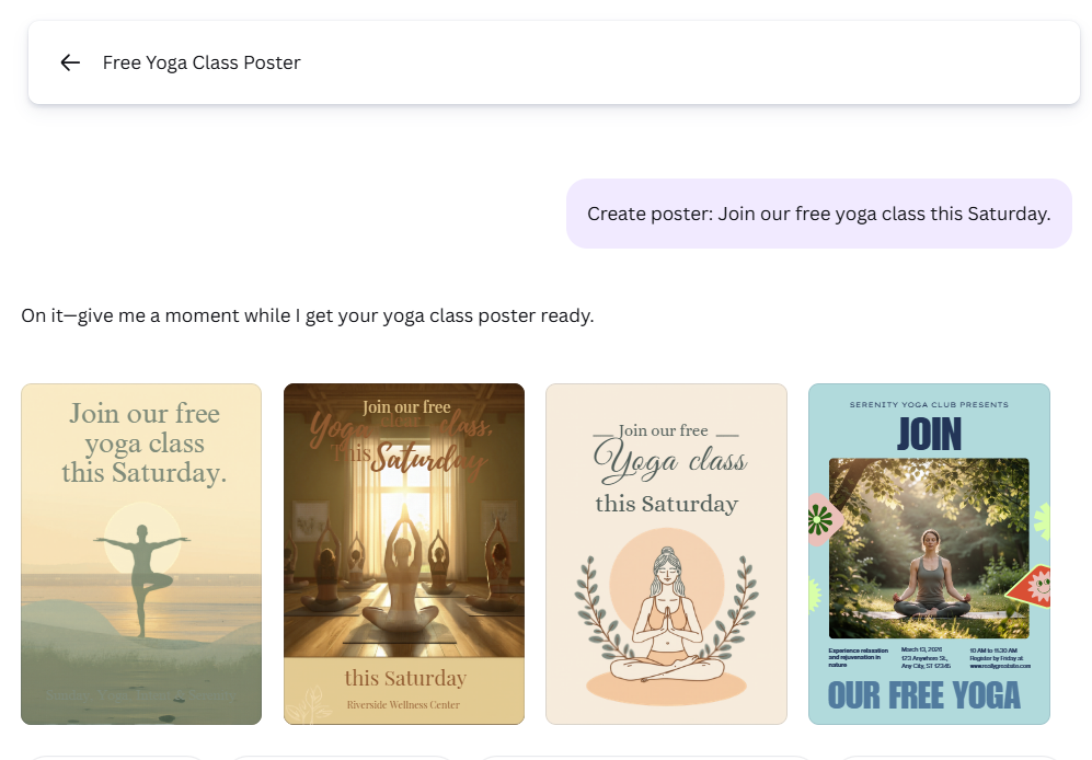 “Write 3 short Twitter posts promoting a new yoga class. Keep them simple and motivating.”