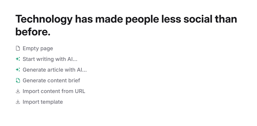 Now it’s time to fill in the outline. Frase has built-in AI Commands to generate or edit text in your document. To use them: