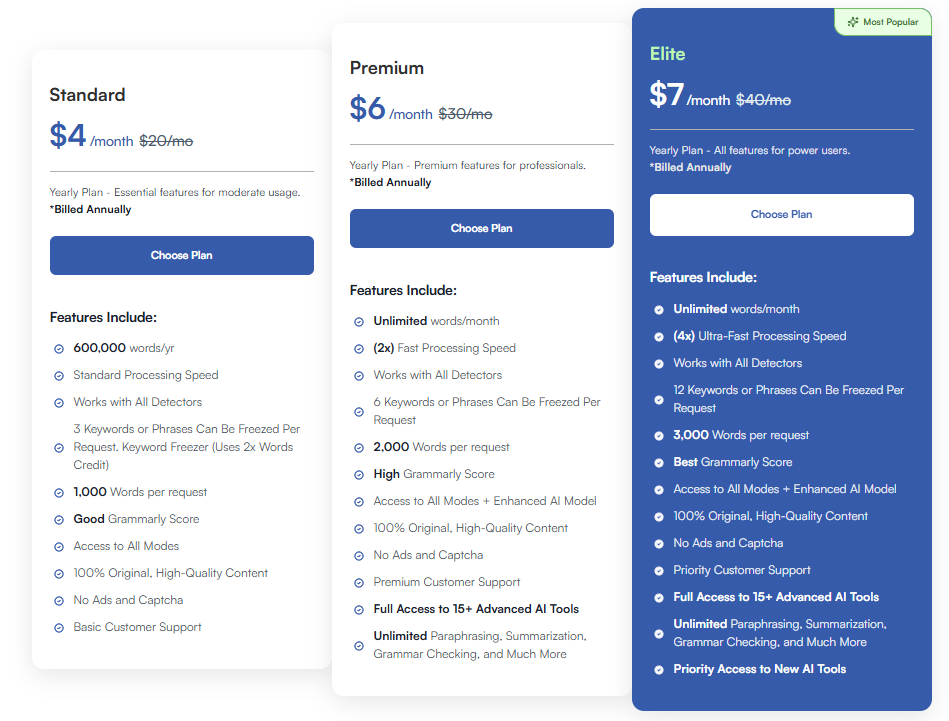 - Paraphraser.io AI Humanizer (Tool 3) – Works, but results weaker, full version costs more than others, still free basic humanization.