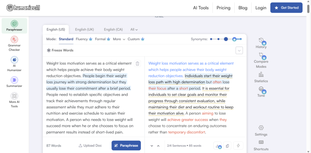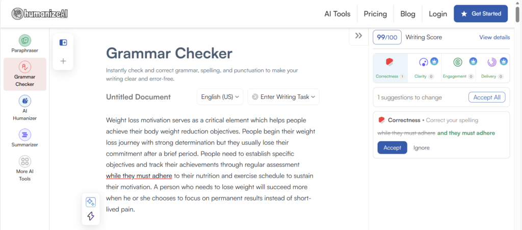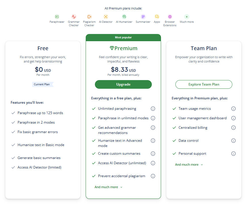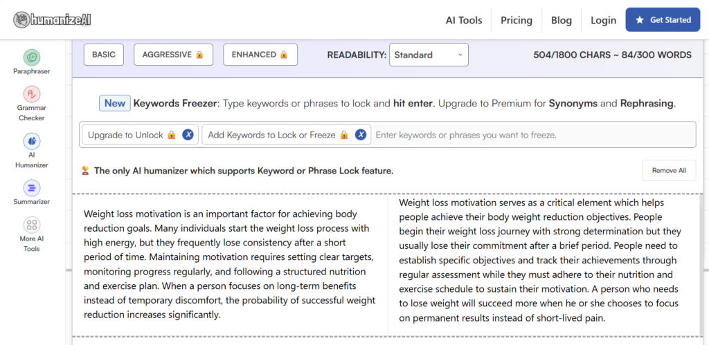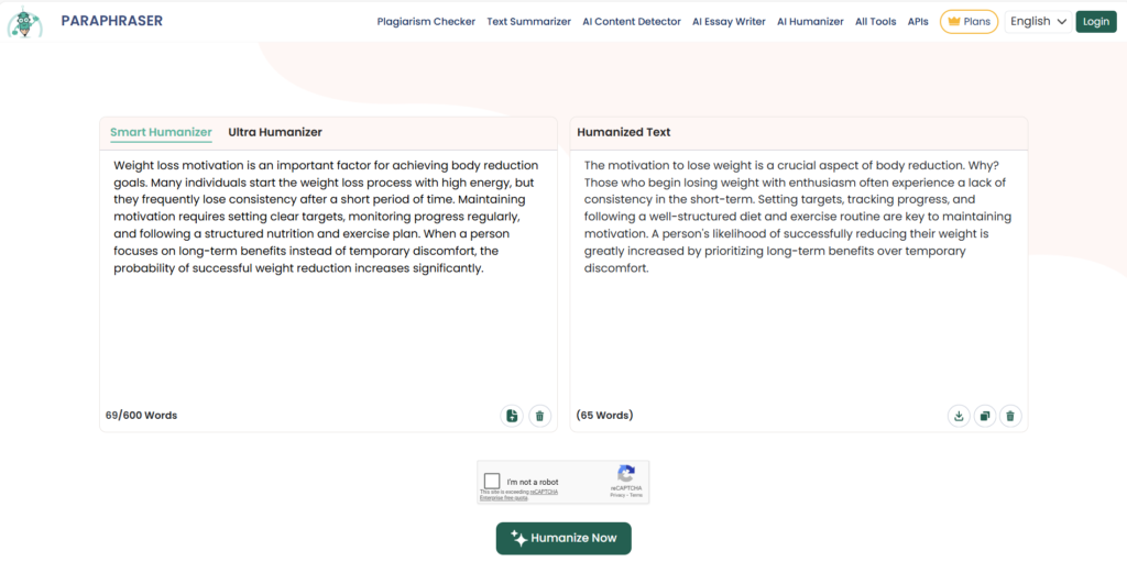 A big advantage is that you can use the humanizer not only for free, but also without logging in or creating an account. It is very fast and easy to access.