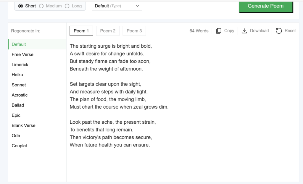 Additionally, there’s a Story and Poem Generator—how fun! With just one click, I got three lines about my weight loss. And the best part? Everything is still completely free.