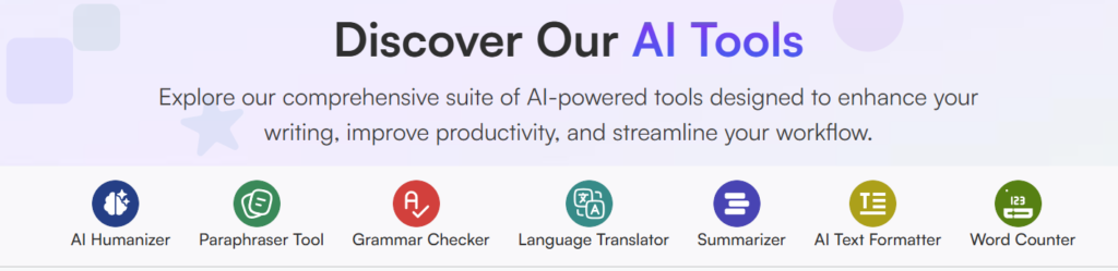 In addition, the website offers other useful tools such as a Paraphraser, Grammar Checker, Summarizer, Language Translator, and Text Formatter. If you like how it works, you can stay on this platform for a long time because it provides many helpful writing tools in one place.