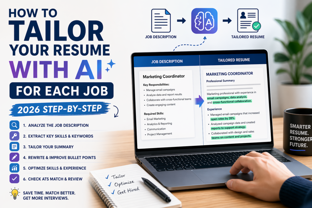 In this guide, I will show you how to tailor your resume with AI for each job step by step. You will learn how to save time, match the right keywords, and create a resume that feels stronger and more focused. Not fake. Not overdone. Just better for the job you want.