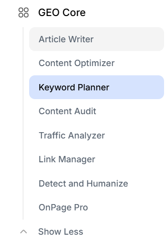 GEO Core is the heart of Scalenut. It’s where you research, create, and refine content for both search engines and AI discovery.