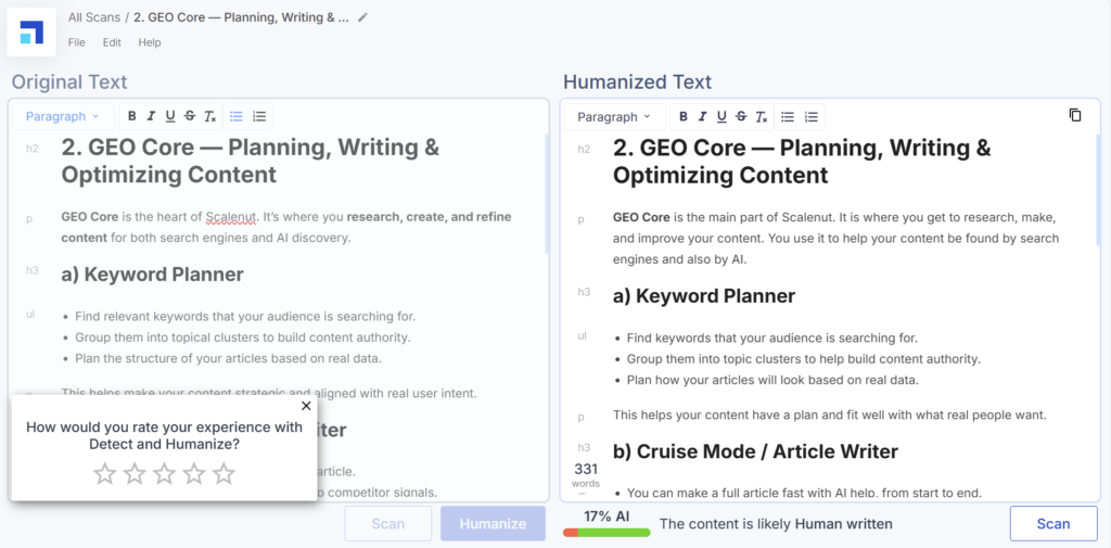 - Detect & Humanize — Makes AI drafts feel natural and brand aligned.